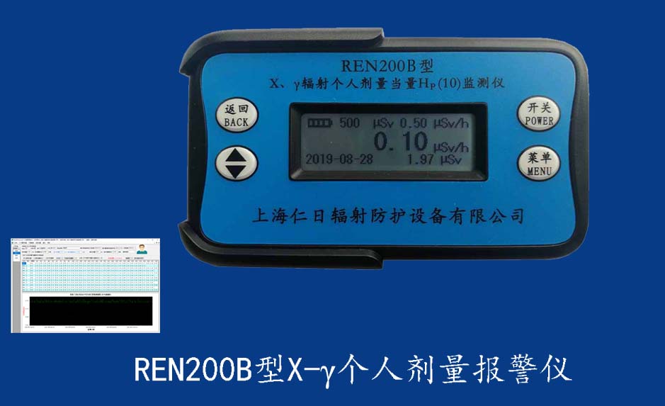 REN200 個人輻射監測儀 REN200型X、γ個人劑量報警儀(又叫X、γ輻射個人劑量當量HP(10)監測儀)內置高靈敏度蓋格計數管為探測器,主要用來監測各種放射性工作場所的X、γ以及硬β射線的輻射,具有響應快,測量范圍寬的特點。能顯示工作場所的劑量當量率和累積劑量,更換電池時,日期及累積數據能永久保存。可選配RenRiPersonal個人劑量管理軟件,該軟件可存儲多個人的歷史數據,能記錄日累積、月累積、年累積、輻照時長、計算平均劑量率、扣除或不扣除本底輻射,且以文字和圖譜的方式展現數據。廣泛應用于核電站、加速器、鋼鐵、化工、同位素應用、醫院、工業X、γ無損探傷、放射醫療、鈷源治療、γ輻照、放射性實驗室、核設施周圍環境監測